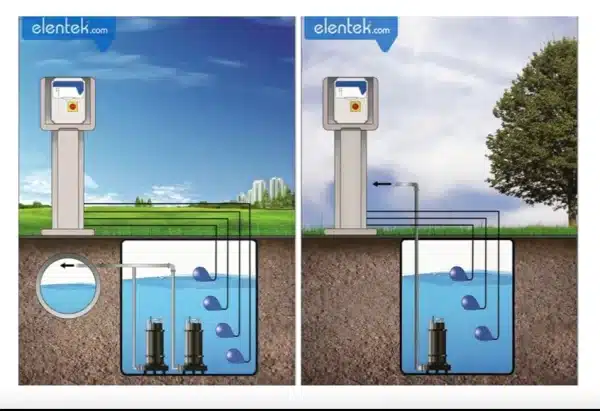 Kahden pumpun ohjauskeskus, runsailla ominaisuuksilla. Tyhjennys- ja täyttötila valittavissa.