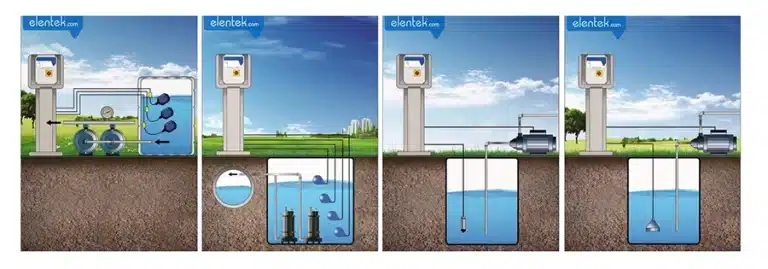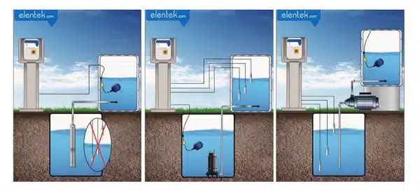 - Kuivakäynnin suojaus: tasoanturit / uimurit / painekytkimet ja minimivirta