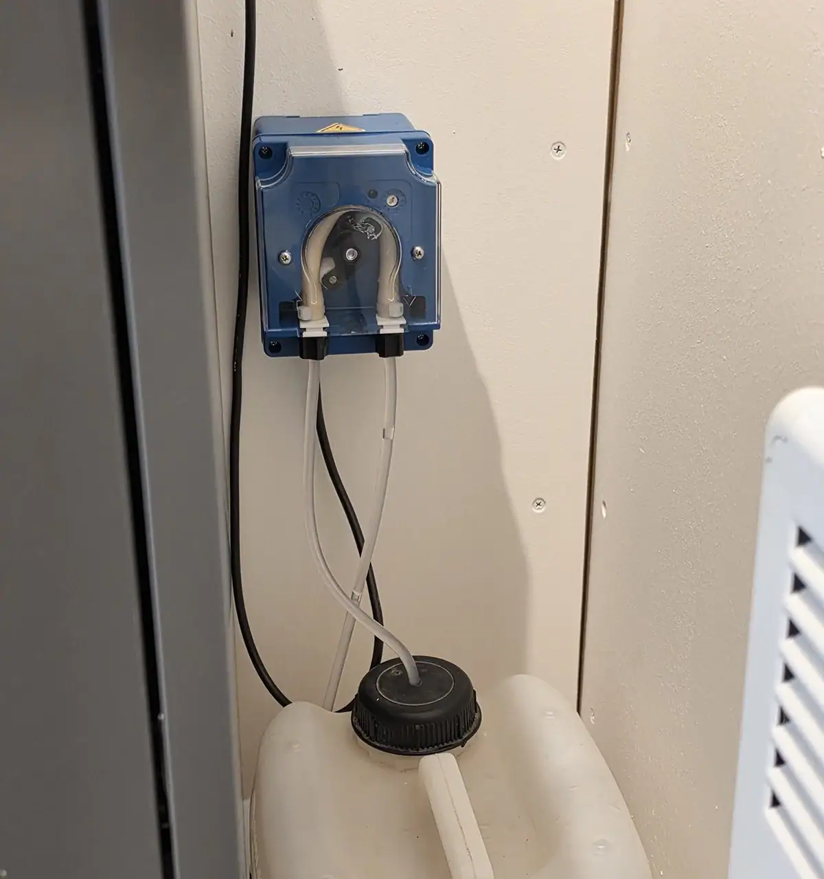 Automaattinen annostelu varmistaa, että kemikaalia syötetään tasaisesti ja oikea määrä. Ajastimen avulla annostelua voidaan säätää käyttötarpeen mukaan. Ajastin on valmiiksi ajastettu.